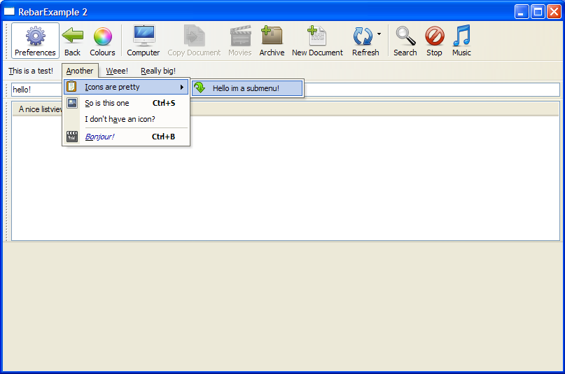 Rebar and Toolbar Example with Menu |